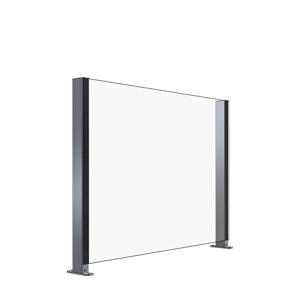 Glazen balustrades die kunnen worden uitgebreid met hoogteverstelbare windbescherming.